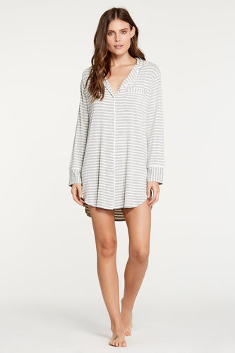 Augustine Shirt Dress- Off-White/Chocolate Stripe