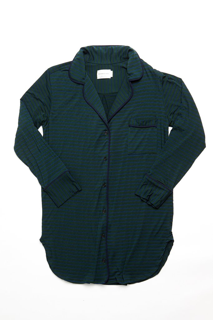 The 'Augustine' Shirt Dress is a modern take on a classic nightgown. With a collared neckline, front pocket, and piping. Made with buttery-soft fabric that you'll want to spend all your nights in.